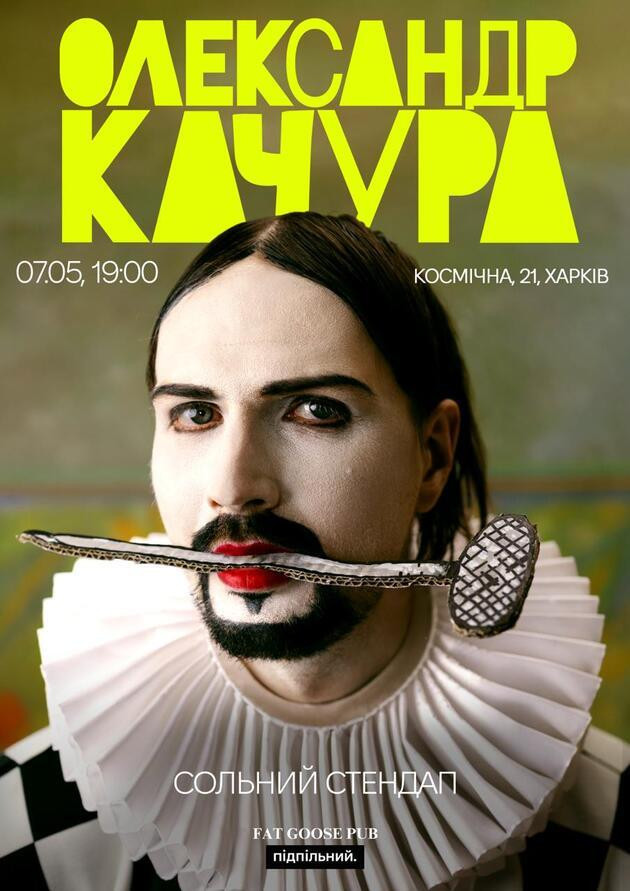Олександр Качура виступає з новими жартами. Сказати щоб там щось таке прям, що відрізняється від усього попереднього? -Та ні, можете під час виступу навіть сходити до вбиральні, також буде можливість поїсти піцу, навіть піцу «чотири сири», а Олександр буде вам щось розказувати. Ви можете прийти зі своєю парою, а можете й самі. В залі трохи пахнутиме кухнею, бо для вас готуватимуться страви. А Олександр вам буде розказувати жарти та сподіватися, що ви посмієтеся. Він репетирував.