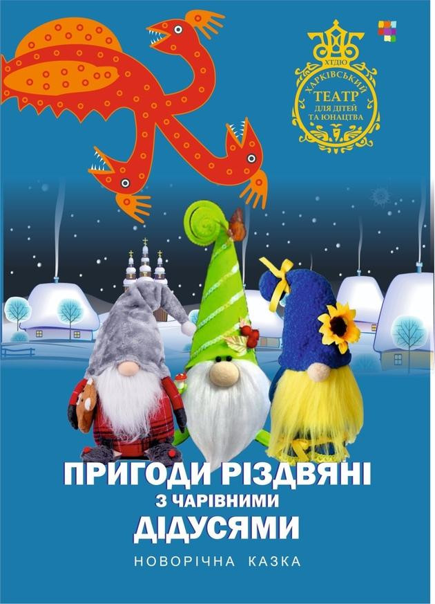 Під час новорічної вистави "Пригоди різдвяні з чарівними дідусями" ви та ваші діти потрапите в справжню казкову країну. Де , в компанії різдвяного гнома , водяника й навіть величезного дракона , дізнаєтеся, хто ж насправді приносить подарунки на Різдво та Новий рік. На ваших дітей чекають захоплюючі ігри, новорічні розіграші і , звичайно , дивовижна музична казка у виконанні артистів Харківського театру для дітей та юнацтва.